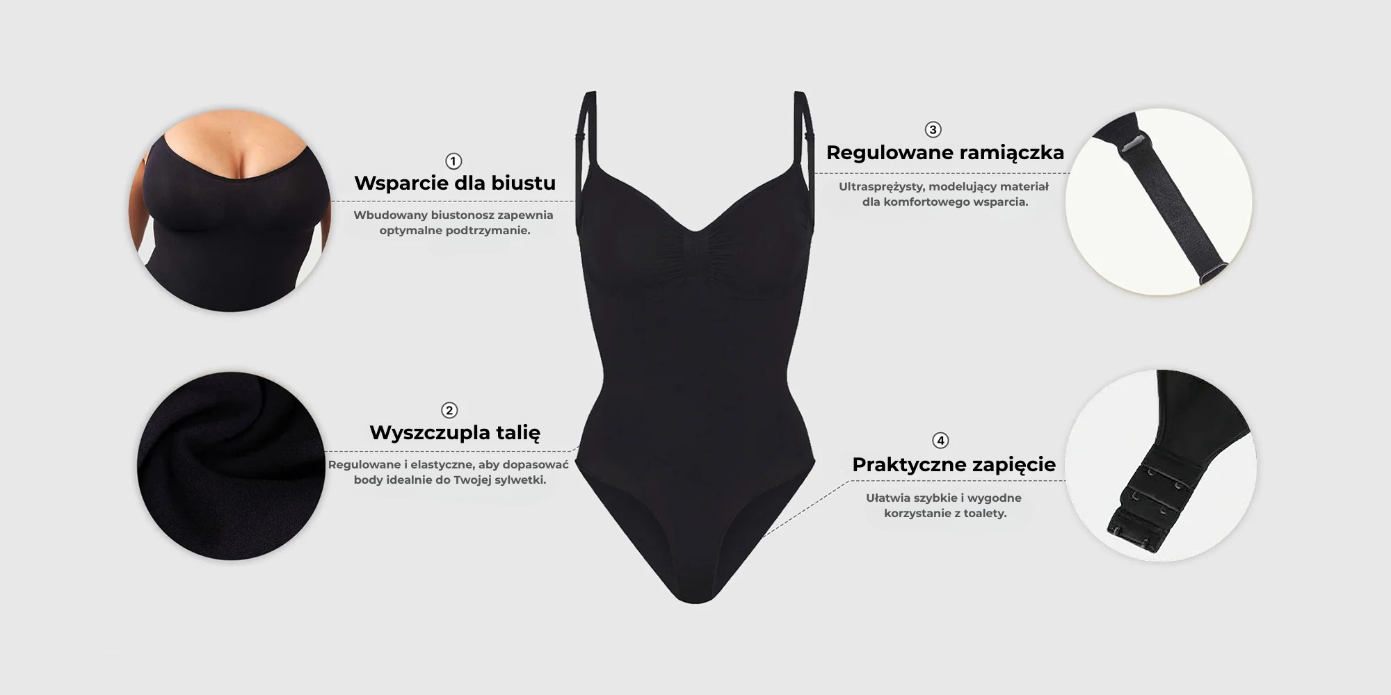 Wsuń i wysmuklaj swoje ciało w body, które modeluje krągłości i podkreśla atuty, przywracając Ci pewność siebie.